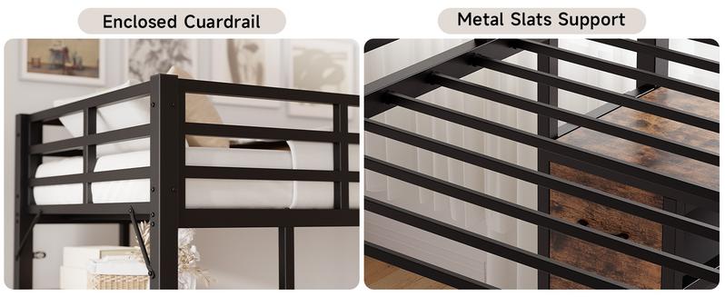 - Sturdy Heavy Duty Metal Loft Bed: This twin size loft bed adopt a stronger square heavy duty metal frame structure that includes closely packed metal slats ensures stability and security . Its solid construction eliminates the need for springs, providing a secure and reliable sleeping surface