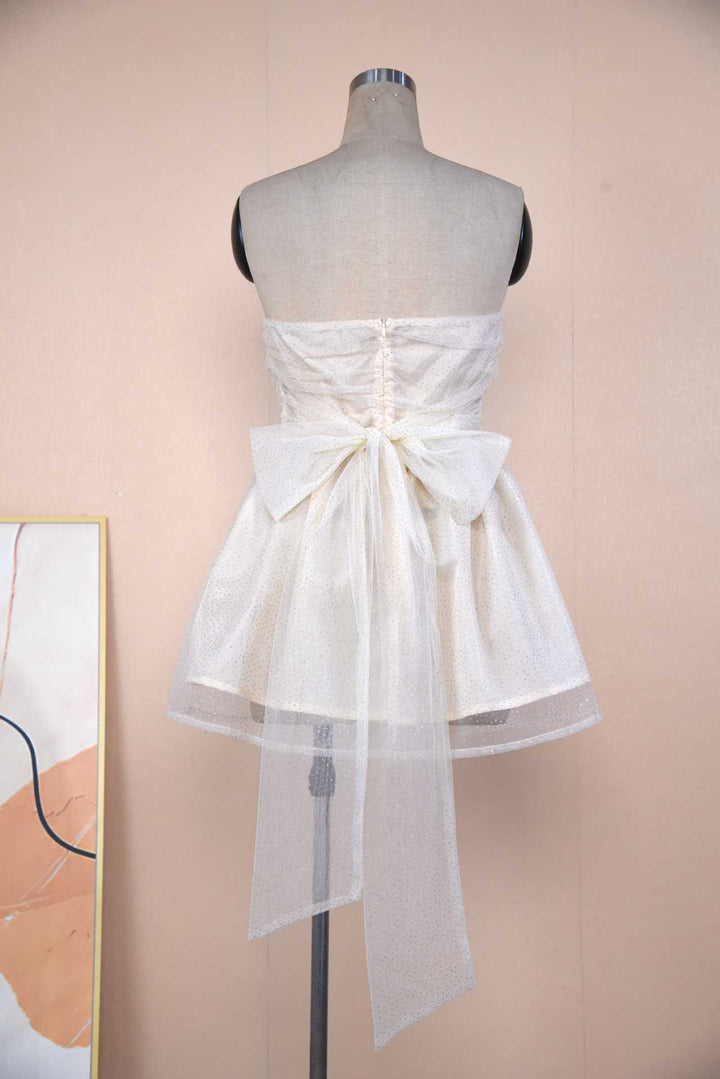 Tube Top Lace Dress With Back Bow-knot Summer Fashion Temperament Mesh Stitching Off-neck Short Skirt